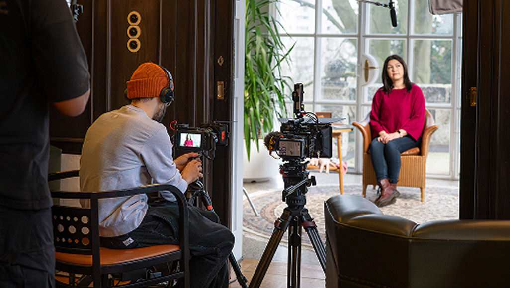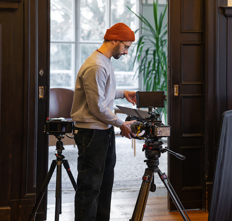 Wir filmen Sie in der Villa Eberhardt mit zwei Kameras. Die Nachbearbeitung erfolgt dann durch unsere Filmemacher und eine weitere Person aus unserem Team.